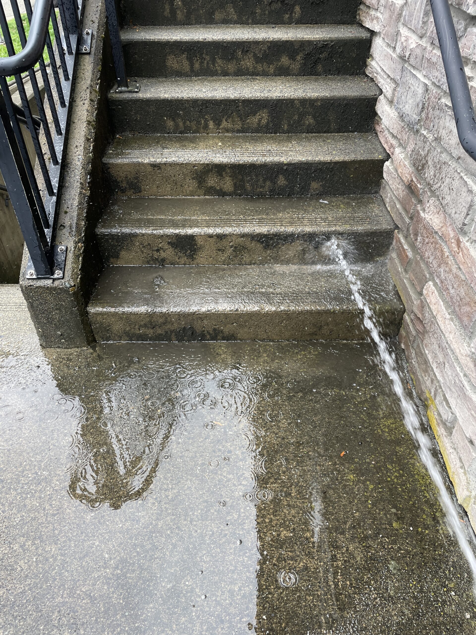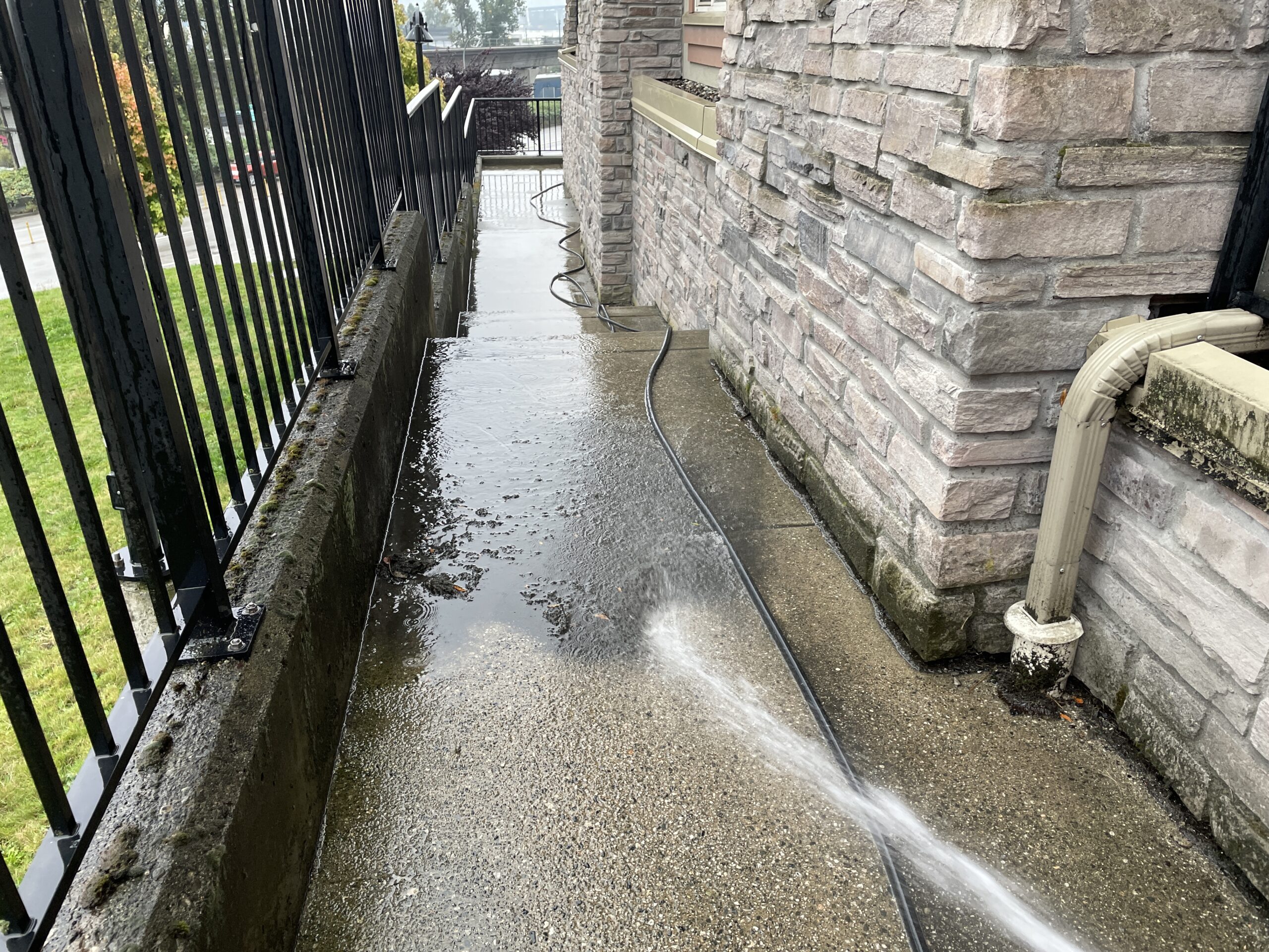 Over Friday and Saturday, Jeff and I brought out the hoses and cleaned up the concrete path that wraps around the 244 building, as well as the stairs facing Allen Street.
